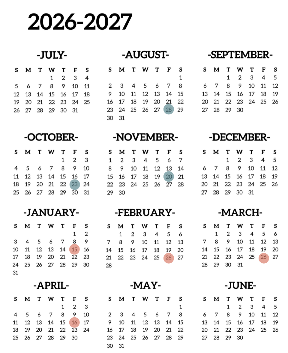 2026-2027 Important Dates